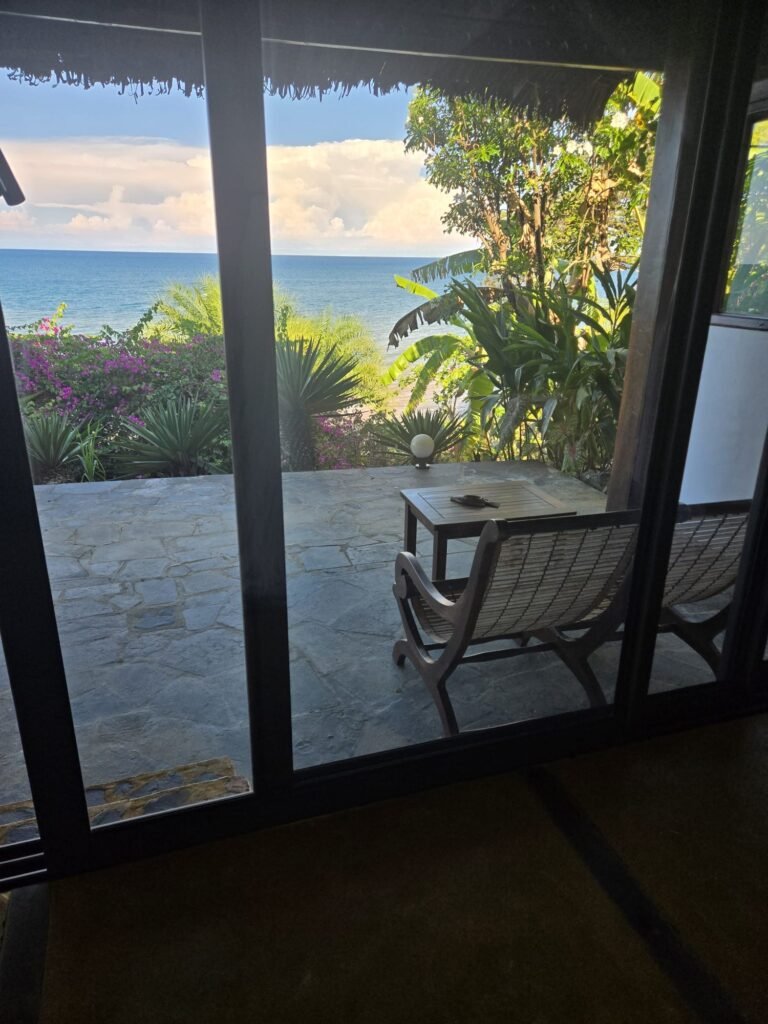 Lodge lumineux avec vue directe sur l’océan, offrant une atmosphère paisible et intimiste. Équipé d’une terrasse privée, d’un lit confortable, d’un coin thé/café, d’un mini bar et d’un espace bureau, idéal pour se détendre face à la mer.